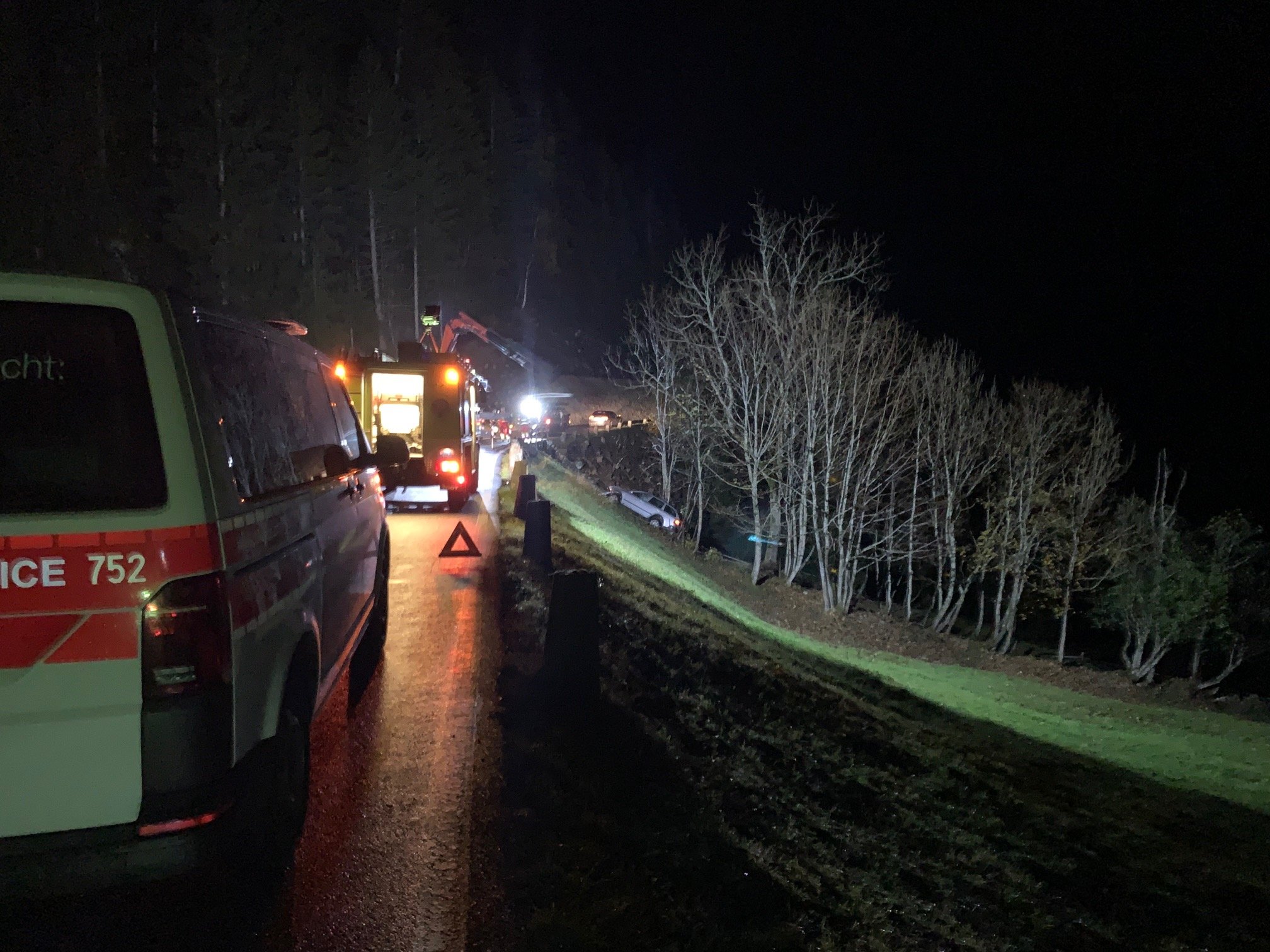 19.49 Uhr, F1, VU mit Verletzten, Guttannen, Passstrasse, Räterichsbodensee. Selbstunfall mit PW, Fahrzeug liegt in Tobel. Absicherung der Unfallstelle, Verkehrsregelung, Mithilfe Bergung Verunfallte Person, Mithilfe Verlad Fahrzeuge. |