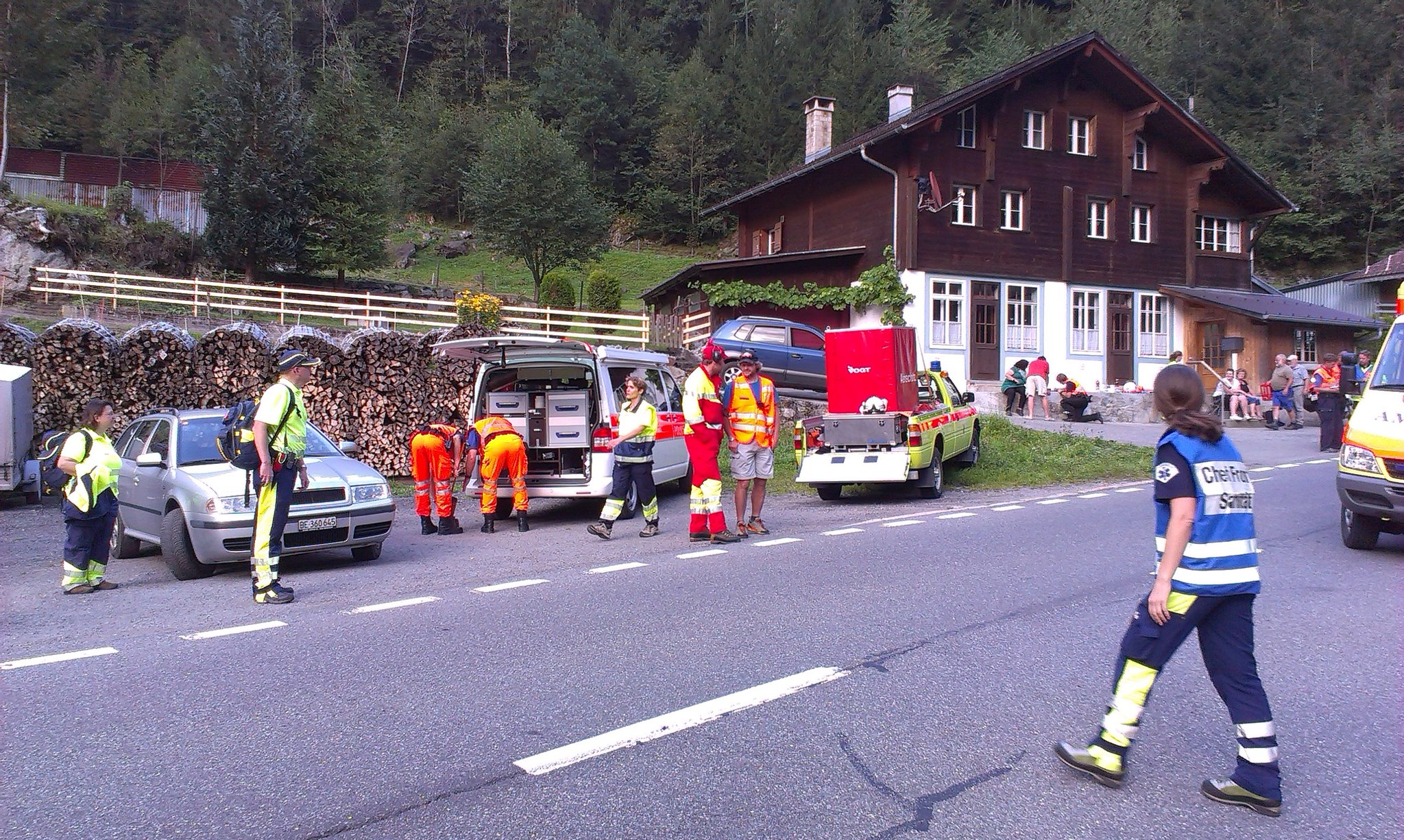 15.05 Uhr, VU mit Verletzten, Gadmen, Käppelikehr-Triftstation, Moto und PW. Sicherung Unfallstelle, Verkehrsregelung, Patientenbergung, Mithilfe Abschleppdienst. |
